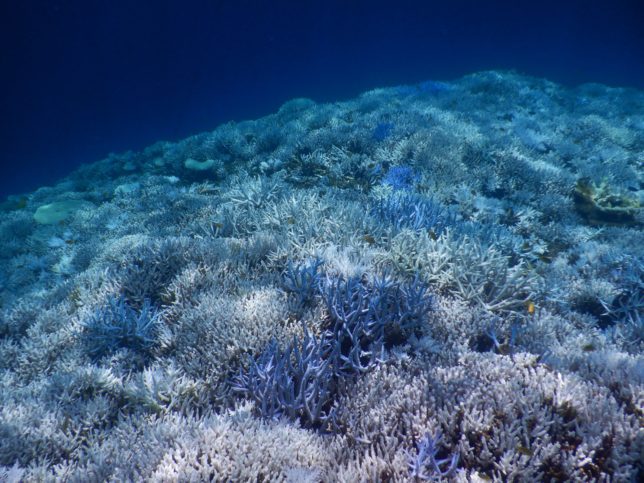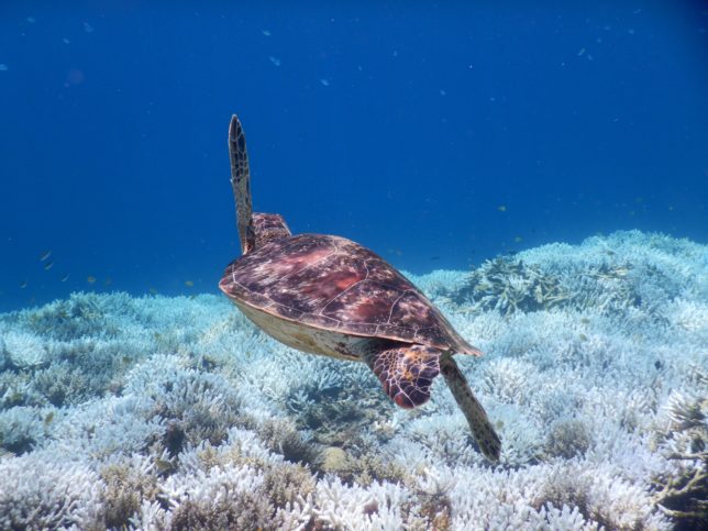 投稿日: 2022年9月5日2022年9月5日 投稿者: 八重山コーラルリーフセイバーズ台風が来ない・・ 2022年度 八重山諸島に台風が 8月末まで来ず 海水の温度が上がり (30℃〜32℃)サンゴ礁の白化が進む 枝珊瑚もテーブル珊瑚も白化してサンゴ礁が弱っています この後 9月初旬に 台風到来 海水の温度が下がりました 果たして 鳩間周辺の見事なサンゴ礁は回復するでしょうか?