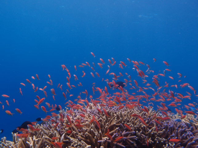 見つけては駆除を繰り返しているので通常ゲストをご案内する珊瑚礁が綺麗なポイントにはオニヒトデはいません