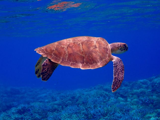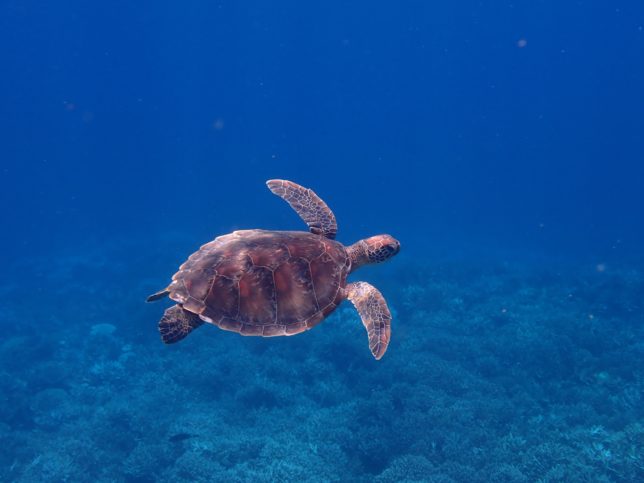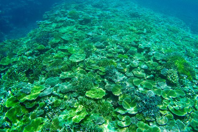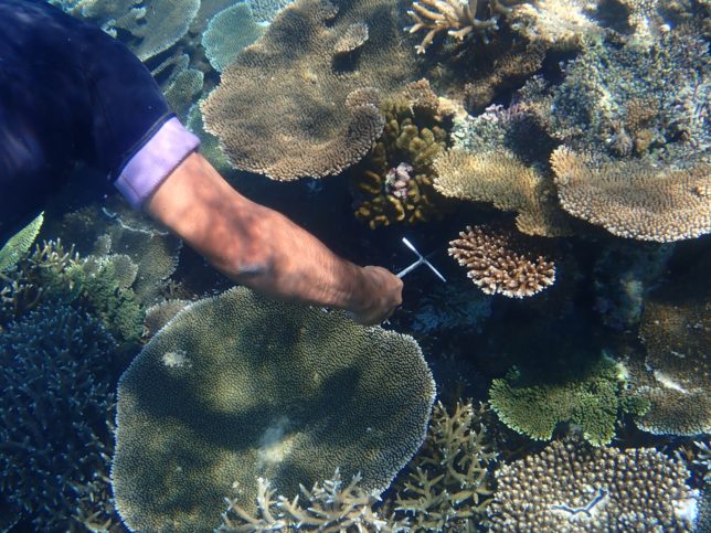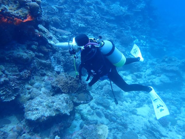 現状八重山諸島海域では海水温度の上昇による白化現象の後で